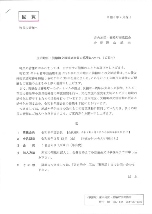 舘山寺町自治会では、組長・班長を通じて会員各戸に回覧板を月に2回行っています。実際の書面をご覧になられる方は、ご家族の一部かと思います。改めて回覧板の内容を確認する為に、回覧物の内容を掲載します。(一部掲載されない配布・回覧物、特定の組・班のみ回覧される場合がございます)
