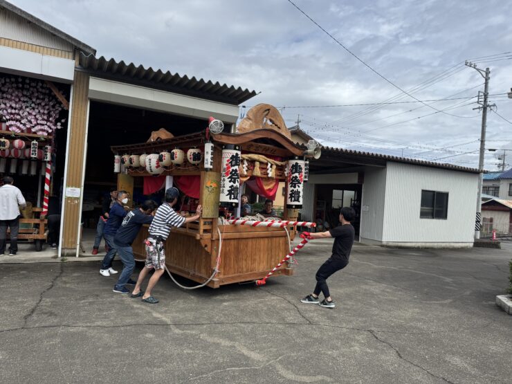 大雨の降った翌日、太陽も覗く中、5月25日9:00〜屋台点検・夏まつり準備が行われました。
