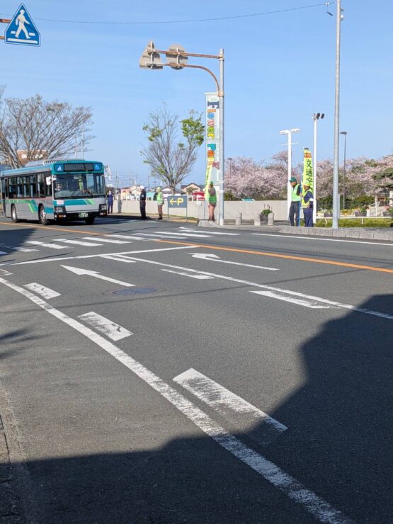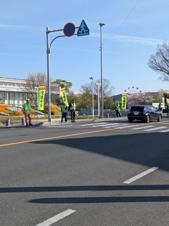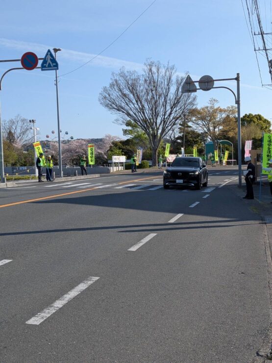 本日7:30〜8:00まで、フラワーパーク前の道路に立ち、春の交通安全運動の初日街頭広報を庄内地区の自治会関係者とともに実施しました。